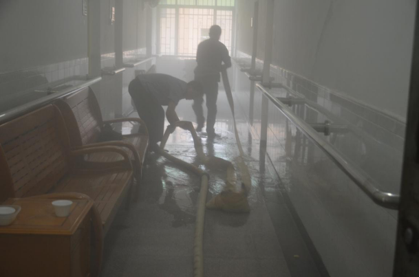 10多分钟后,在上百名安保人员和医护人员的齐心协力下,医院住院患者及家属成功转移到室外安全地带,并将大火扑灭。