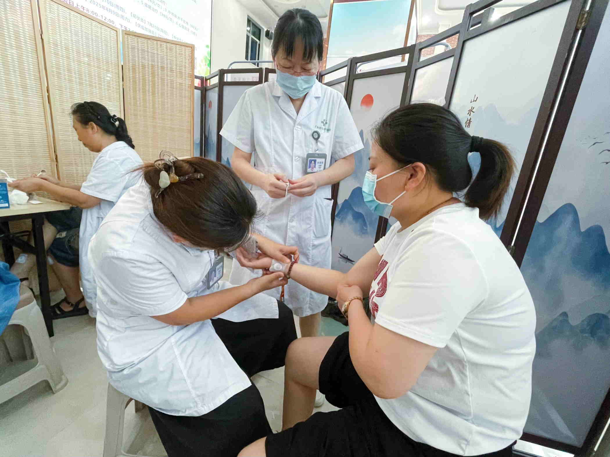 在广州工作的邓女士是“天灸新粉”,她说:“广东同事推荐我来的,说我手脚冰凉、肩颈酸痛可能是体寒,让我来贴一下。”贴敷时,医护人员在她后背的脾俞、肾俞穴位精准施贴。她笑着说:“刚贴上凉飕飕的,现在慢慢热起来了!像有股暖流往里钻。”她表示三伏天灸“出乎意料地火”,今年已经是第四贴,会继续按时来贴全疗程。