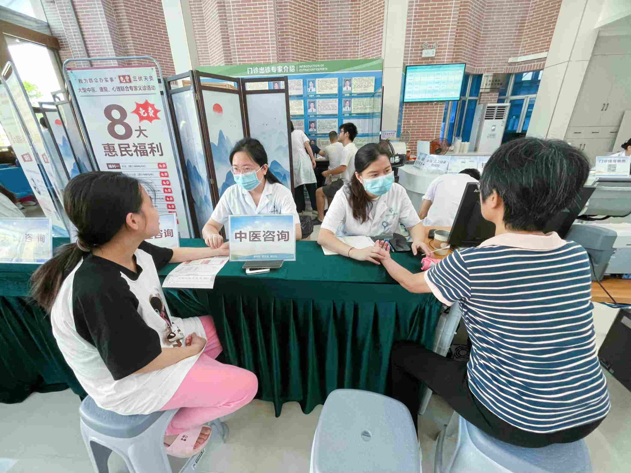 除了心理咨询、健康咨询、血压测量等服务,针灸、拔罐、推拿、刮痧的免费体验也一如既往地受居民欢迎,通过物理治疗的方式可以帮助公众缓解焦虑、抑郁、失眠等症状。