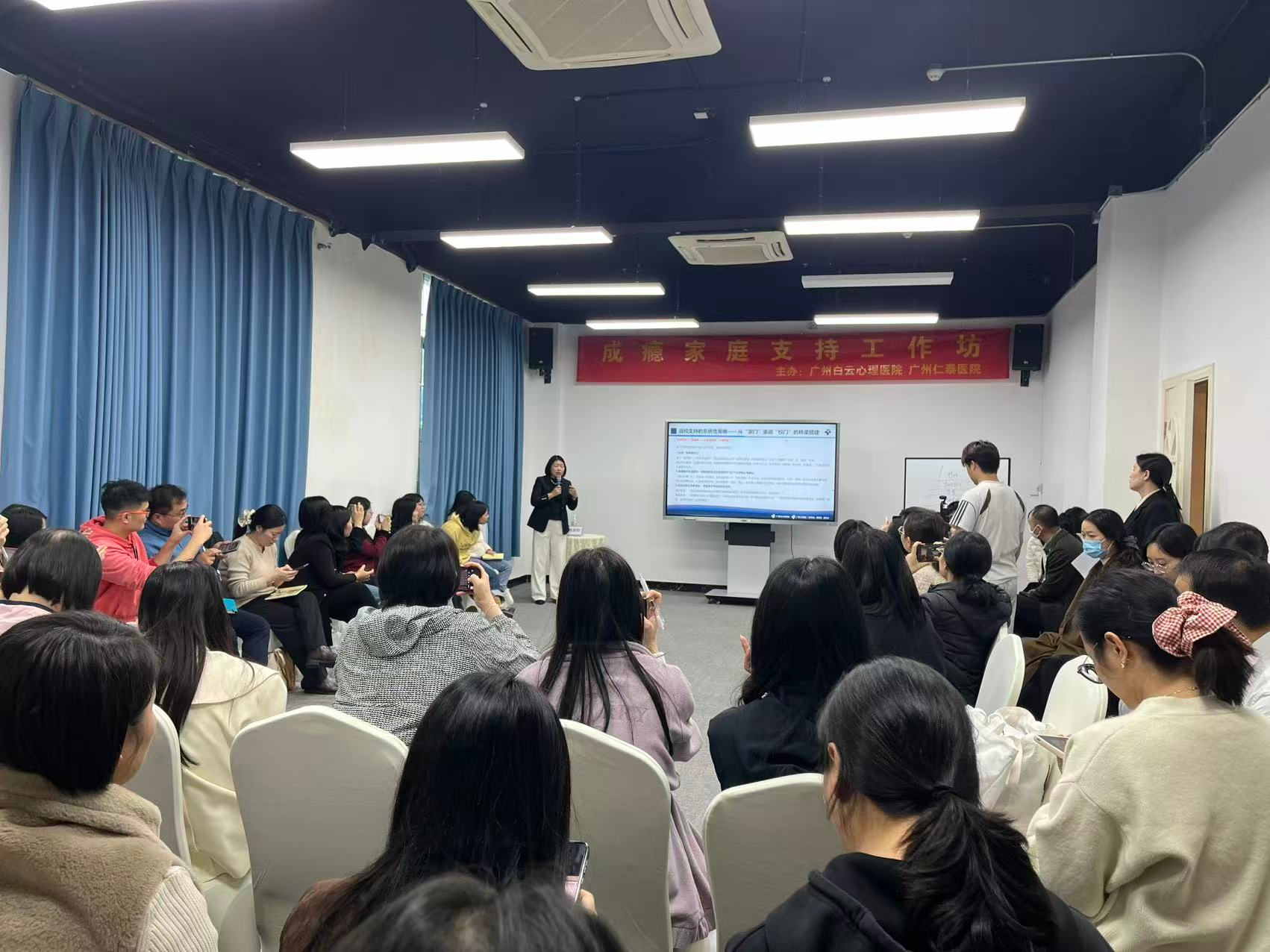 面向成瘾者家属及心理健康从业者举办成瘾家庭支持专题工作坊,则是由广州白云心理医院董事长慕东泰、中级心理治疗师唐丽辉主讲。慕东泰董事长以《读懂家庭关系:如何打破成瘾在家庭中的恶性循环》为题,解析家庭互动误区并给出三步解决方案,还通过情景模拟提供个性化指导;唐丽辉老师则是围绕《青少年网瘾辍学的评估、干预与返校支持》,分享网瘾区分方法、家庭协同干预模型及返校支持策略,辅以康复案例。